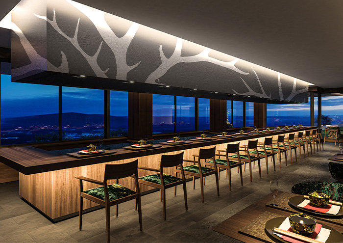 古都・奈良町を望む格別の眺望と、落ち着いた空間。地元食材を中心にしたバリエーション豊かな素材を、伝統的フレンチの技法と日本料理「花菊」が受け継いできた和の技で目の前で焼き上げます。