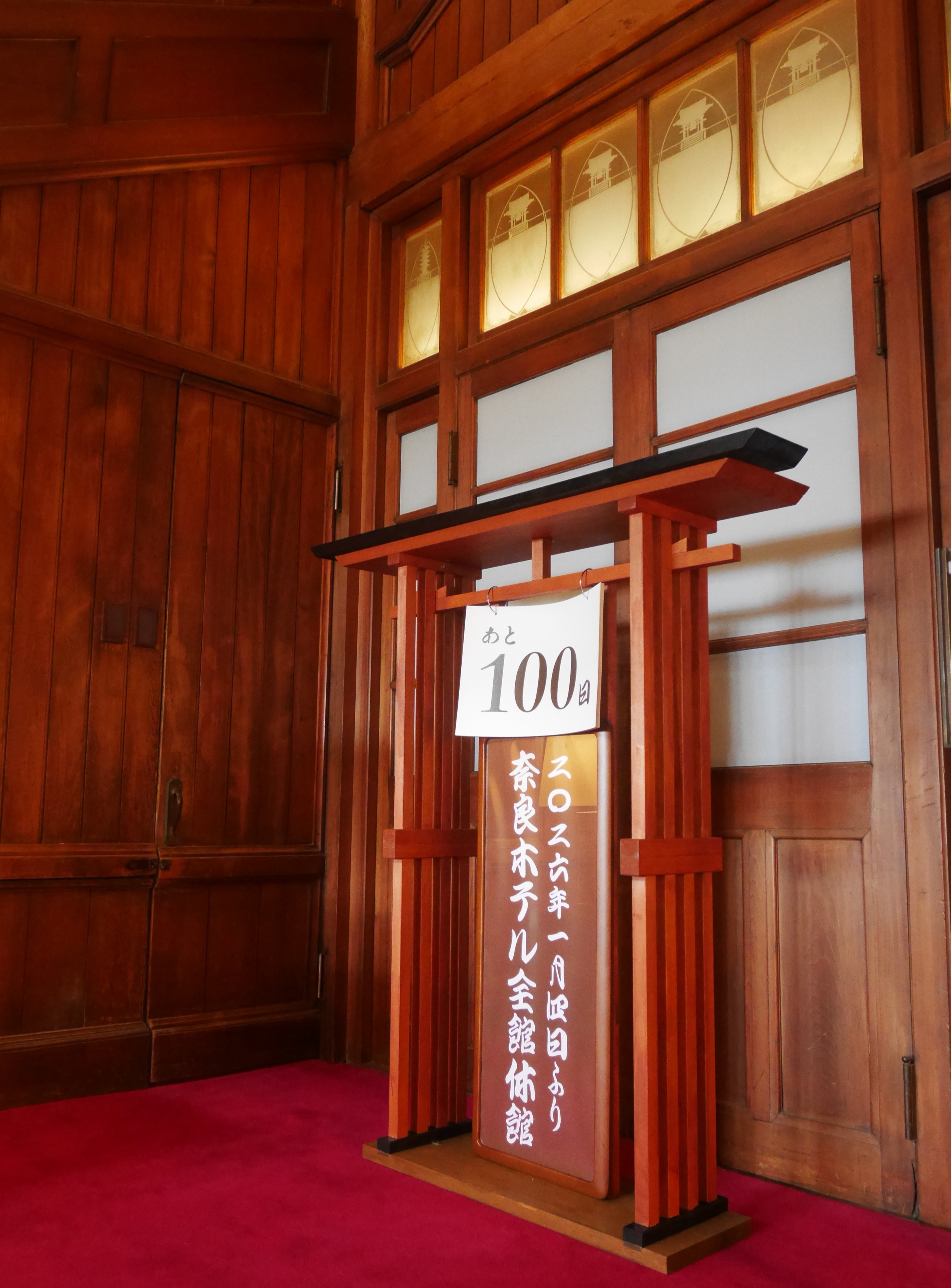 カレンダーのめくり台には、神前式場「蓬莱の間」で長年使用し、役目を終えた机 をアップサイクルいたしました。当館の営繕スタッフが、奈良ホテルの「和」の象徴であ る「鳥居」をモチーフに加工し、奈良ホテルならではの唯一無二のデザインに仕立てました。