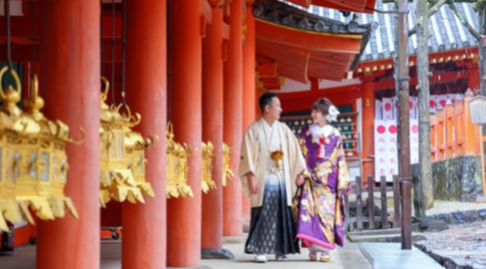 雨男の新郎様 予定通り⁉の雨天でしたが 春日大社はしっとりと幻想的な空間が広がります