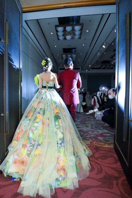 新郎様は恩師とご友人にエスコートしてもらいお色直しへ