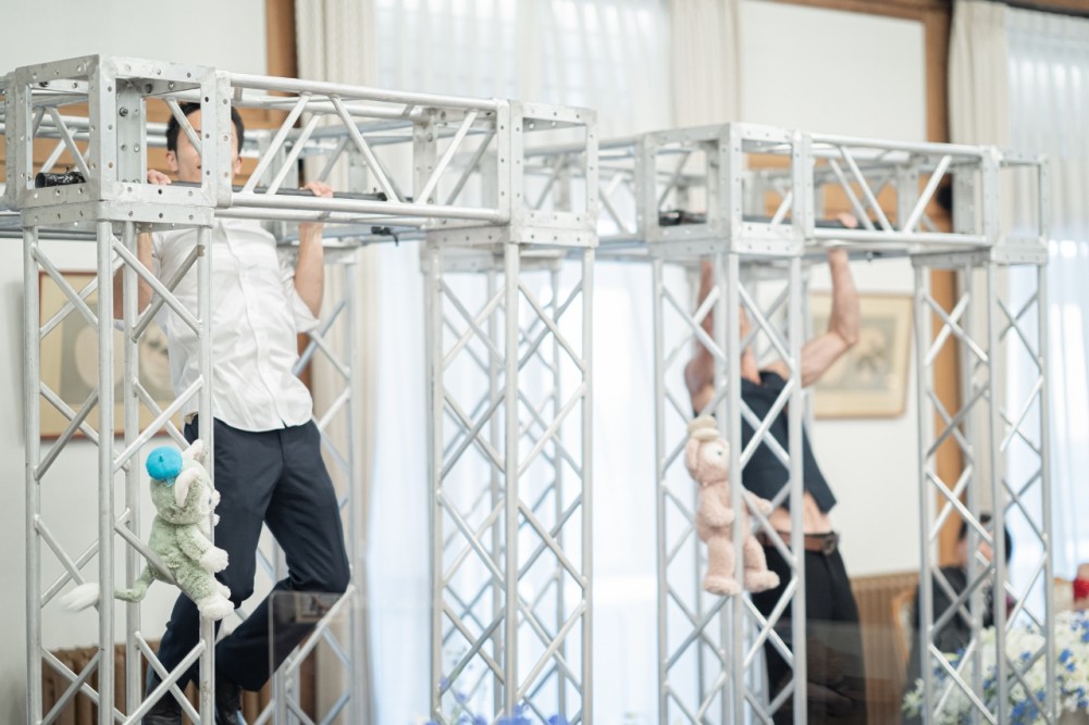 受付で「腕」の写真を見て誰が優勝するか投票し