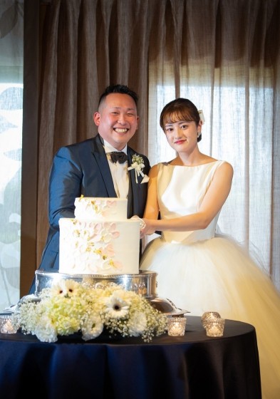 ケーキ入刀 新婦様の大きな愛を新郎様の大きなお口で受け止めます♡