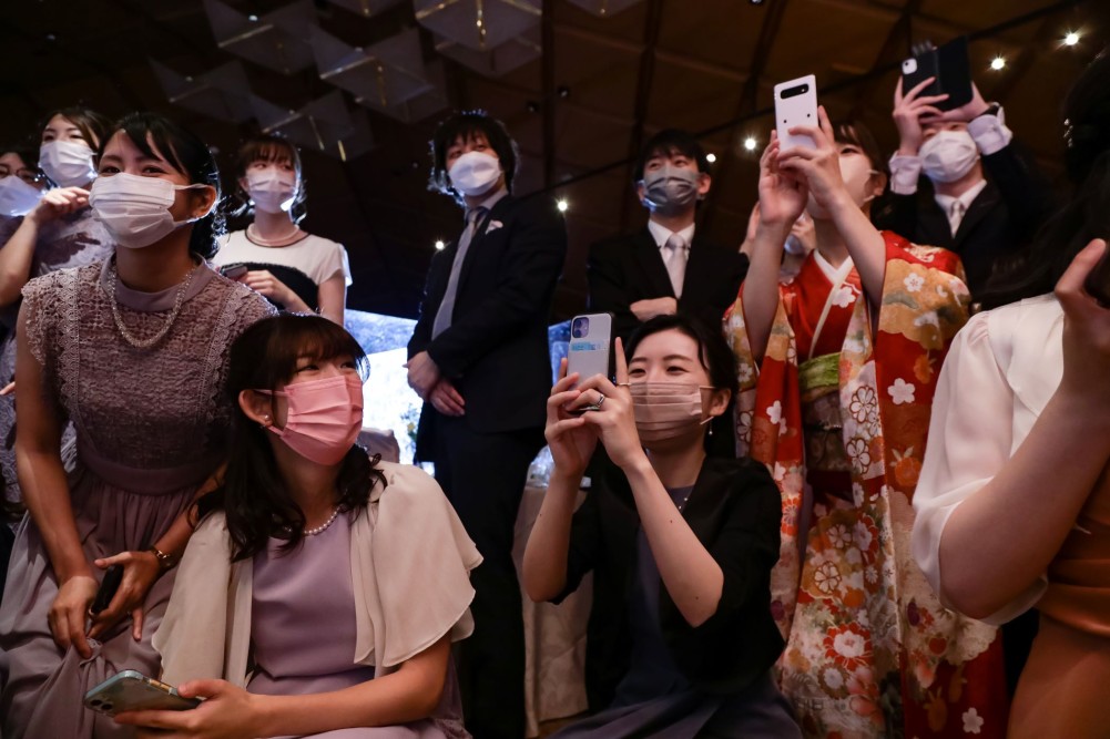 お色直しの退場は妹様と手をつながれ 微笑ましいショット