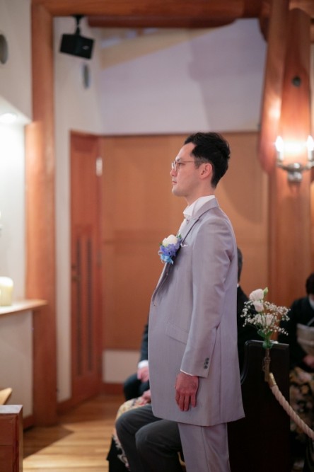 新郎様のピンと伸びた背筋とまっすぐな視線に「誓い」を感じ