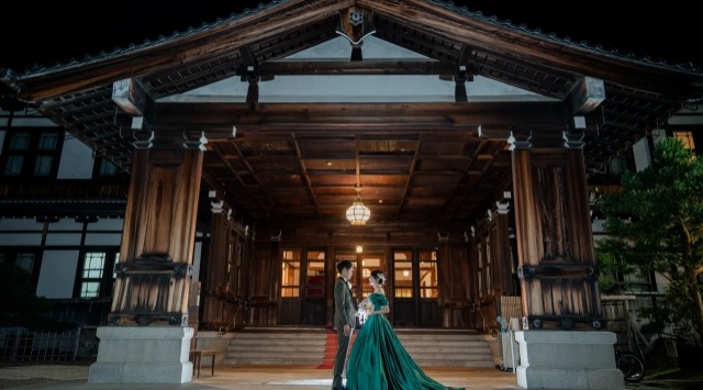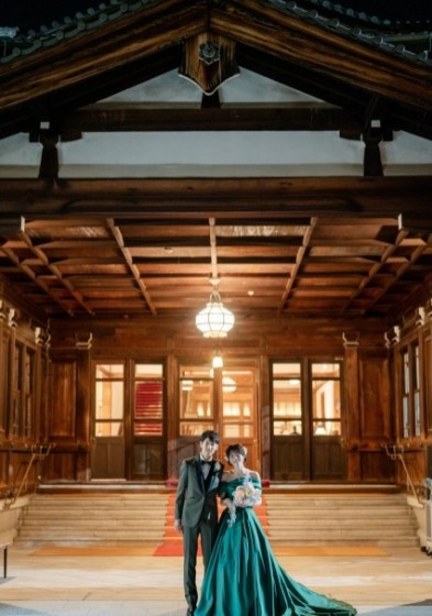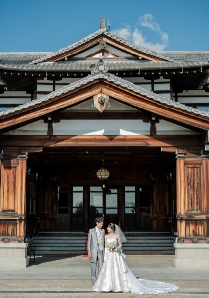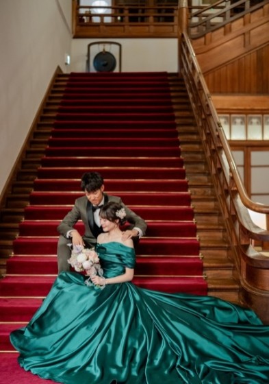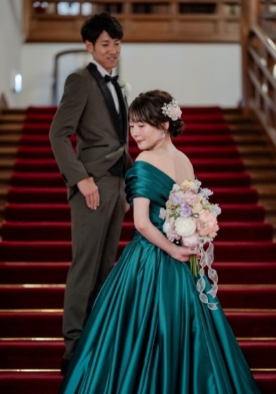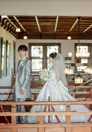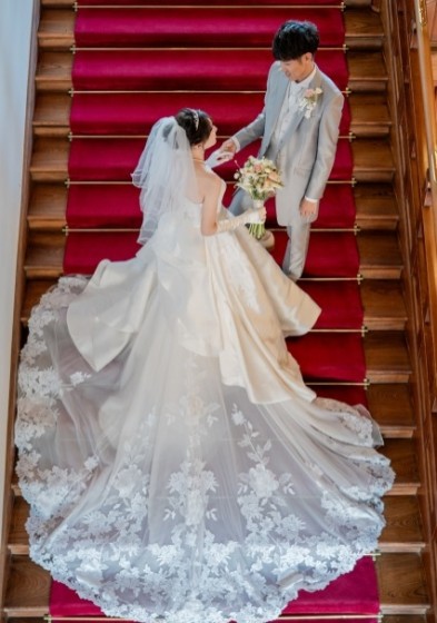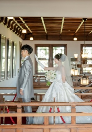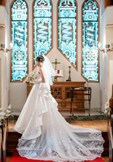 館内の撮影ではトレーンの長いドレスがとっても映えます