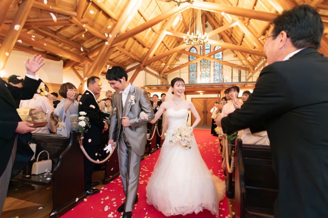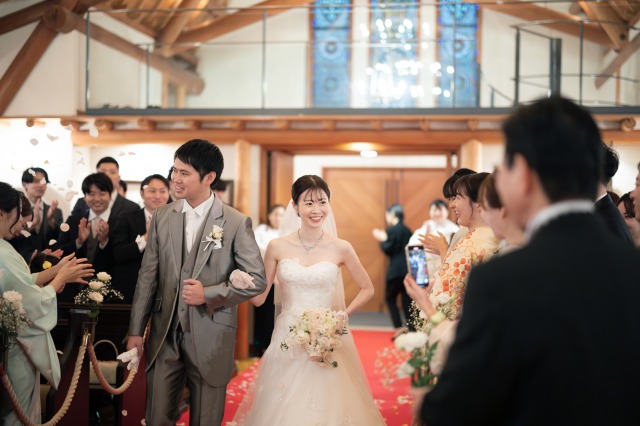 たくさんの笑顔と花びらに包まれて、おふたりの新しい門出を祝福