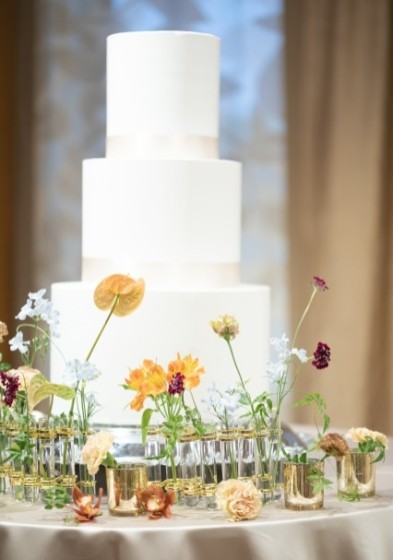 こだわりのフラワーデコレーションが映えるウェディングケーキ