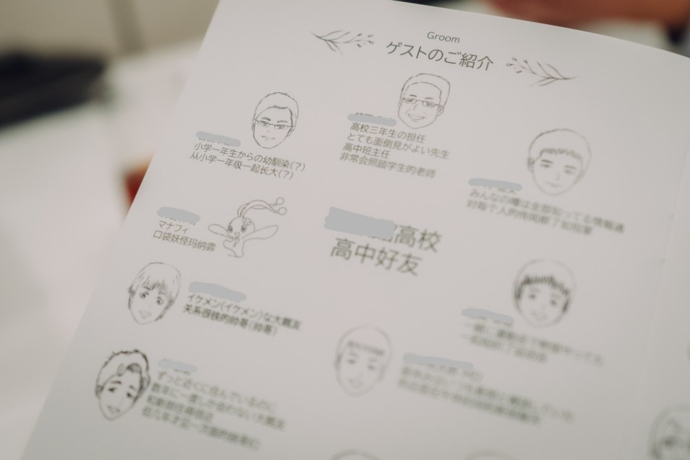 新郎新婦様ご自作の席次表にはゲストの皆様のご紹介も♪