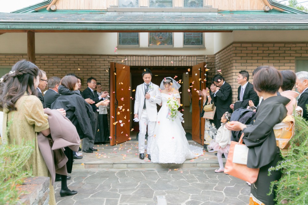 色とりどりのフラワーシャワーがおふたりをやさしく包み込み