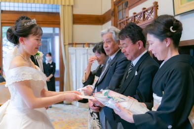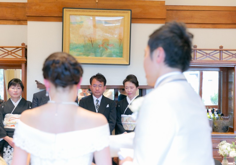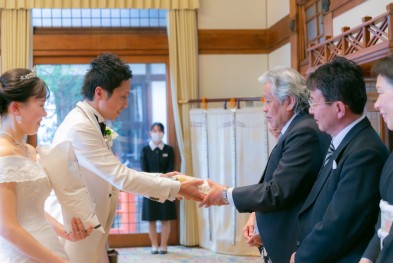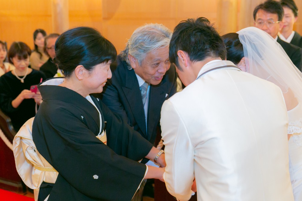 新郎新婦様がご両家の親御様としっかりと握手を交わします