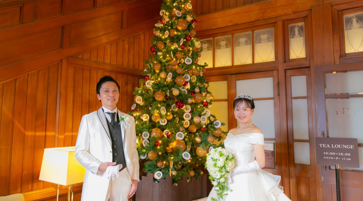 輝くツリーの下で結ばれた あたたかなクリスマスウェディング