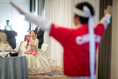 新婦様から愛のこもったサプライズでゲストの皆様と盛大にお祝いします