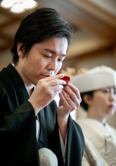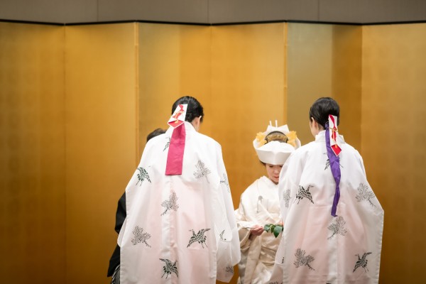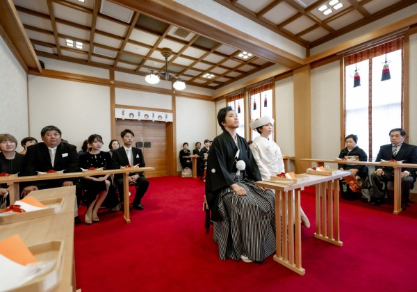 巫女から挙式についてご説明を受け挙式へ向かわれます