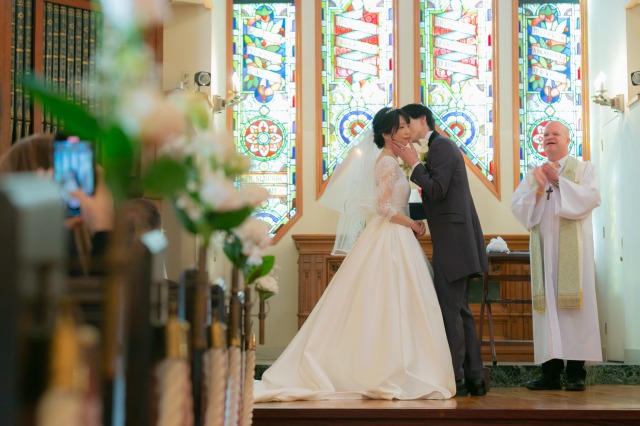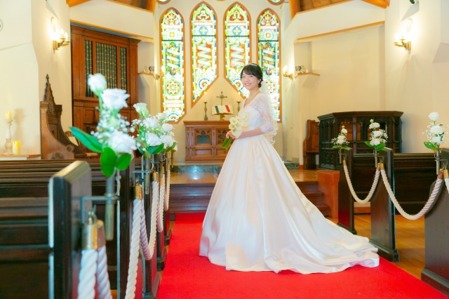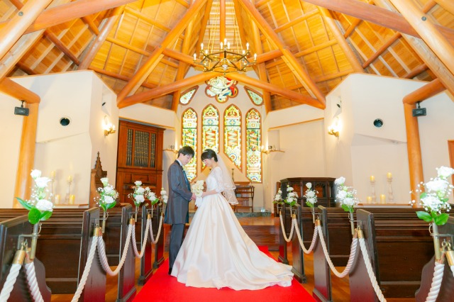 雪のような純白のドレスに暖かな灯りに包まれたチャペル