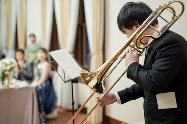 続いては、新郎のいとこ様によるトロンボーン演奏