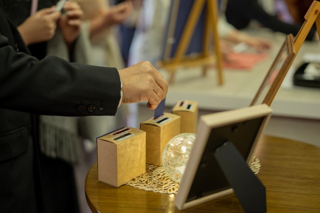 受付ブースでは「新郎新婦が作った料理はどれでしょう!?」クイズも開催!