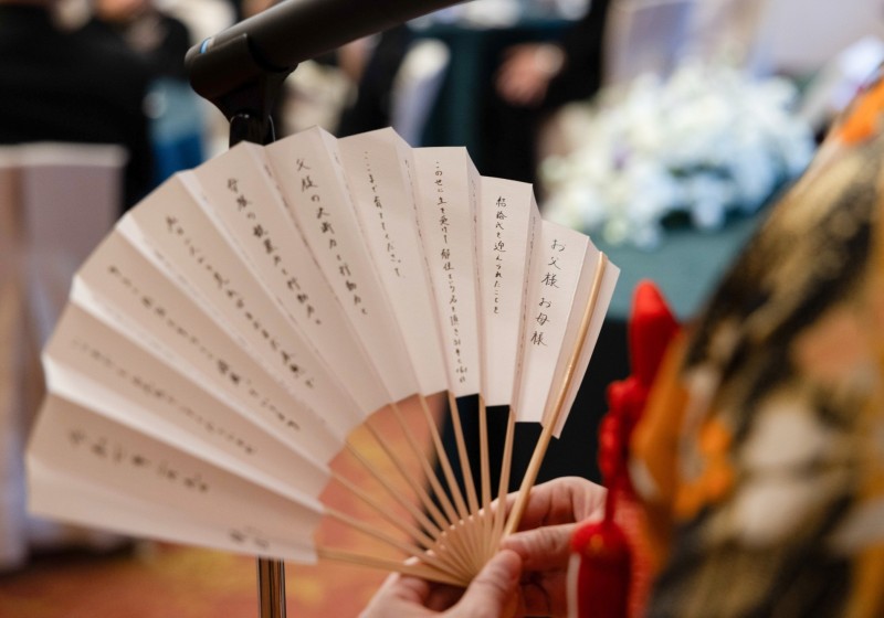 新郎様がお持ちの扇子にも実はお手紙が綴られていたんです!