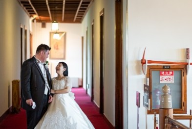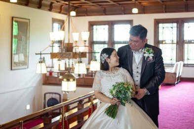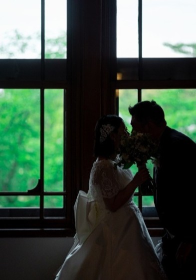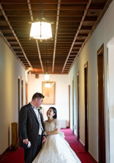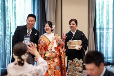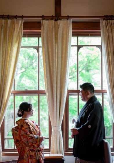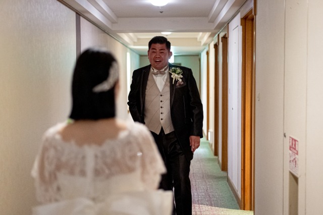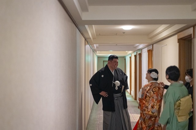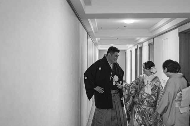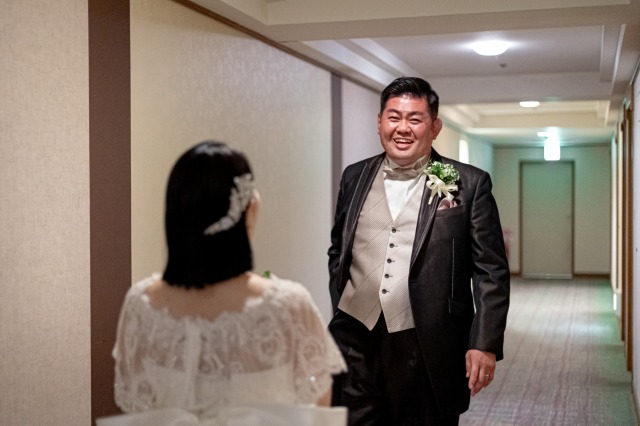 準備が完了し和装姿をお互いに初めて見た瞬間、新郎様の目は釘付け