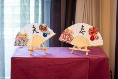 和装での撮影では、親御様作成の扇子と一緒に撮影