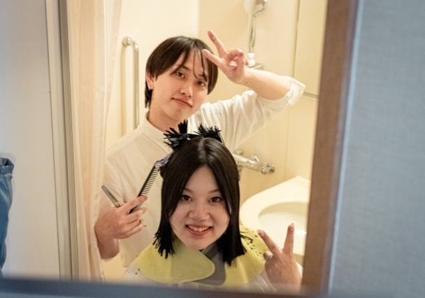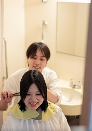 美容師である新婦様のご友人にヘアカットをお願いされていました