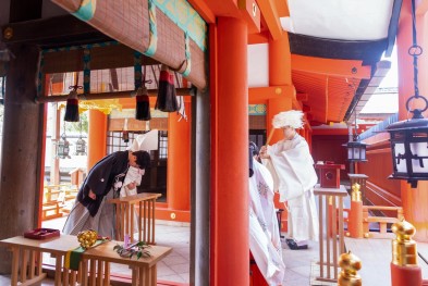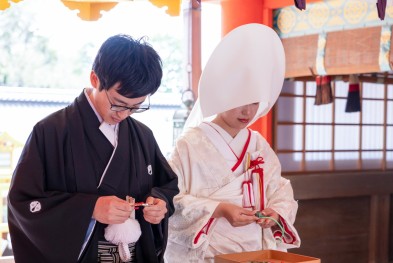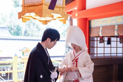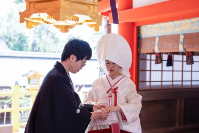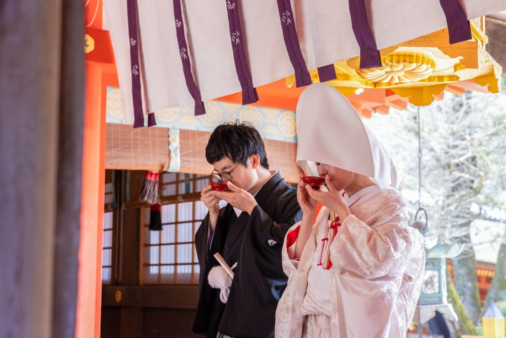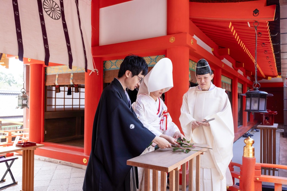 凛とした空気が漂う中、おふたりの挙式が静かに執り行われました