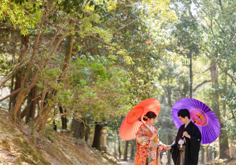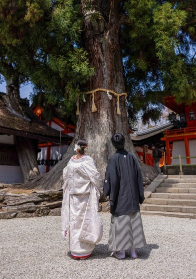 式が進むにつれ 春日大社特有の朱と緑のコントラストが背景となり