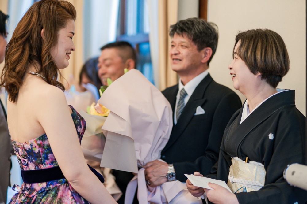 お母様へは生まれたときと同じ重さの体重米を贈られた新郎新婦様
