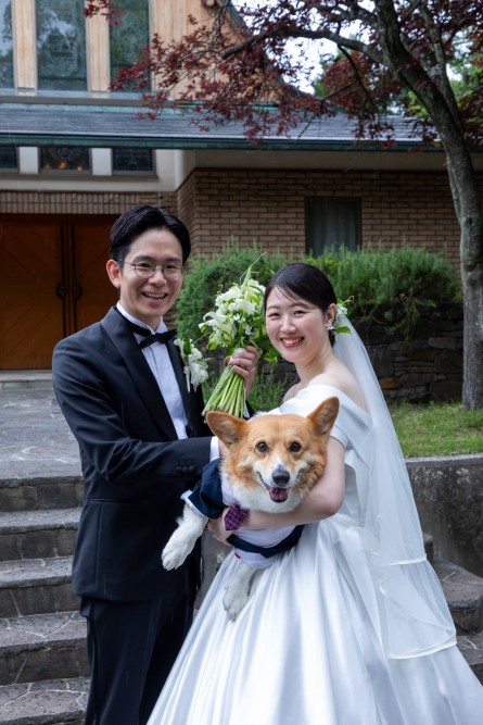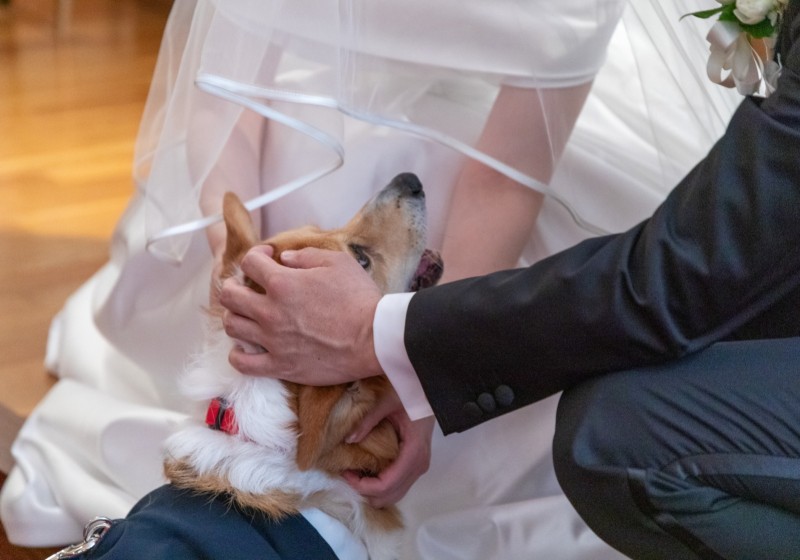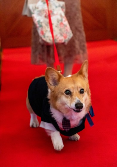 大切な指輪をお届けするのは正装に身を包んだワンちゃん