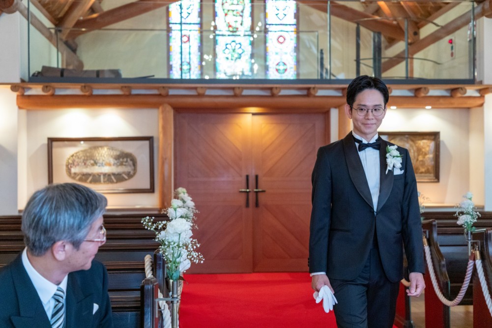 会場からのあたたかな視線を浴びながらおふたりのもとへ