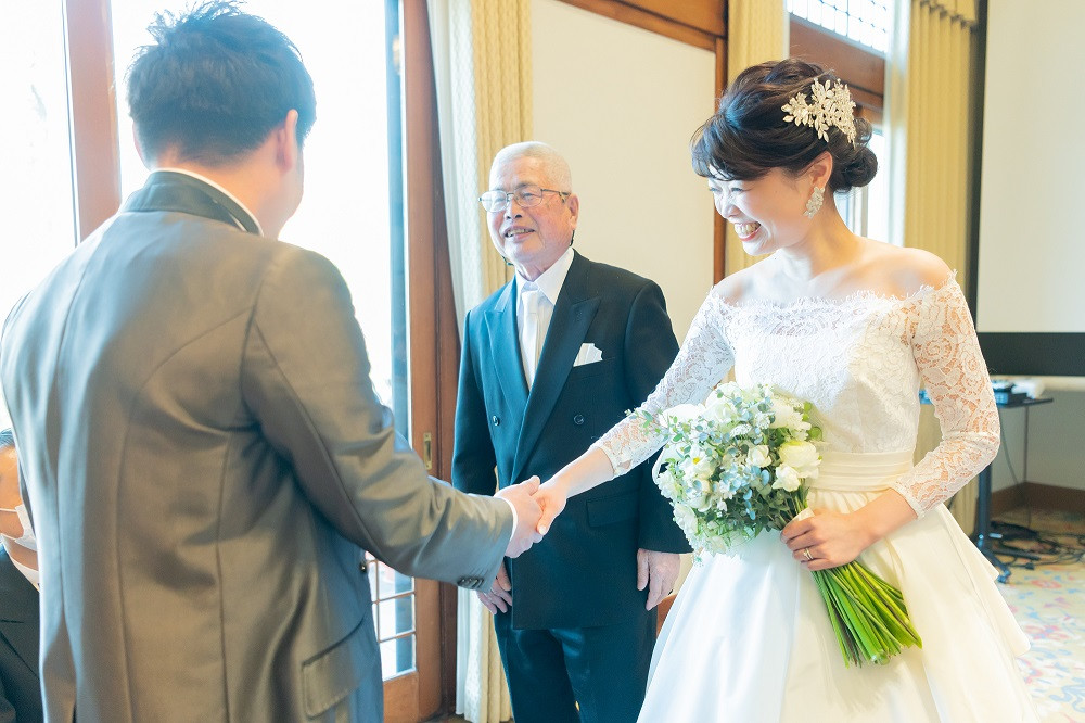 そして新婦様はお父様と腕を組んで新郎様の元へ